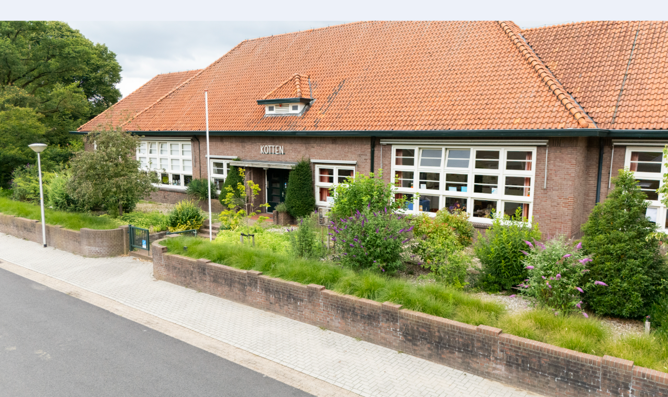 Gevestigd in een prachtig karakteristiek schoolgebouw in een natuurlijke omgeving. De school staat in de kern Kotten en neemt in deze buurtschap een centrale plek in.